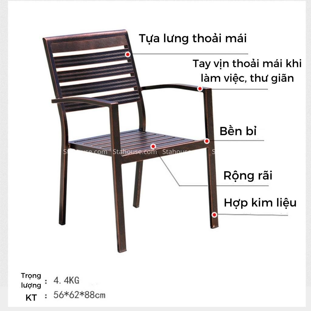 Đây là sản phẩm đa dạng với 3 màu sắc như, nâu đồng, đen và sữa với kích thước của bàn là 75*75*73cm và ghế là 56*62*88cm, sản phẩm này nó mang phong cách hiện đại và phù hợp với mọi không gian sân vườn khác nhau.