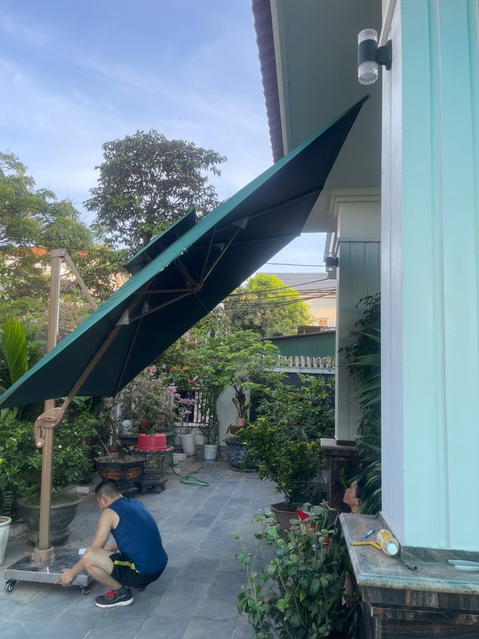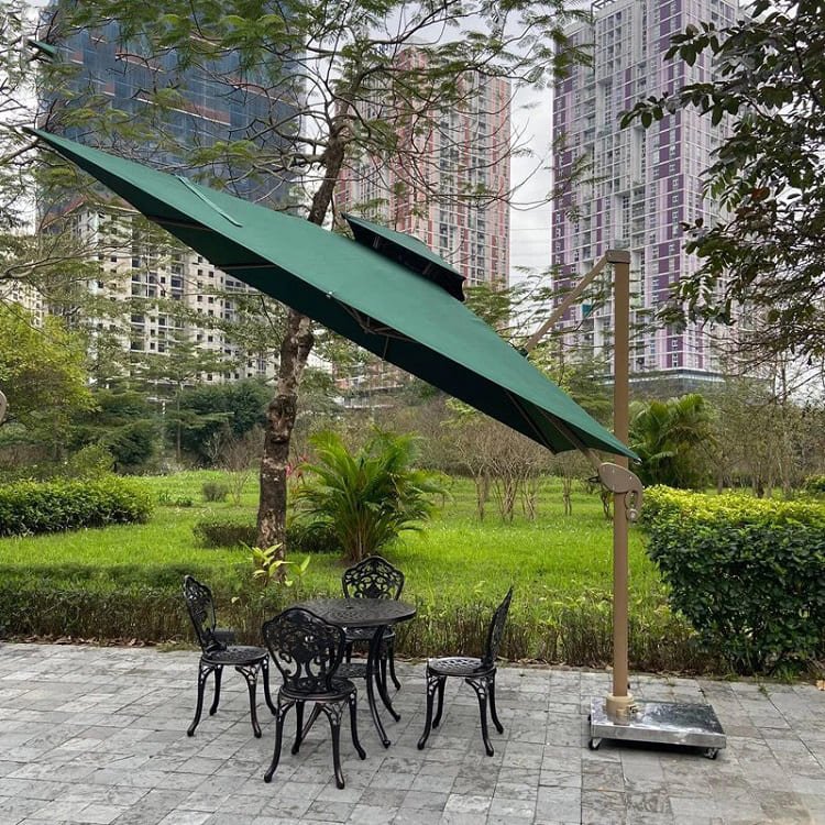 Dù hòa phát lệch tâm vuông 3m hợp kim nhôm xoay 360 màu xanh