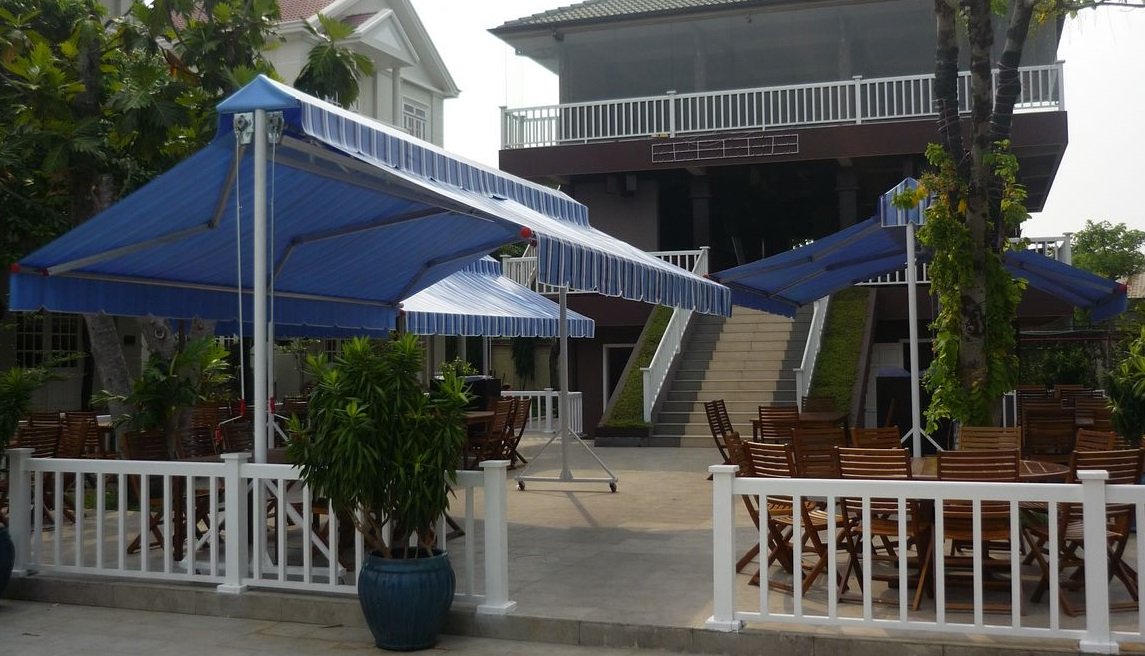 Nhiều mẫu mã, màu sắc và họa tiết giúp mái bạt – mái xếp phù hợp mọi công trình: từ nhà dân đến quán café hiện đại.