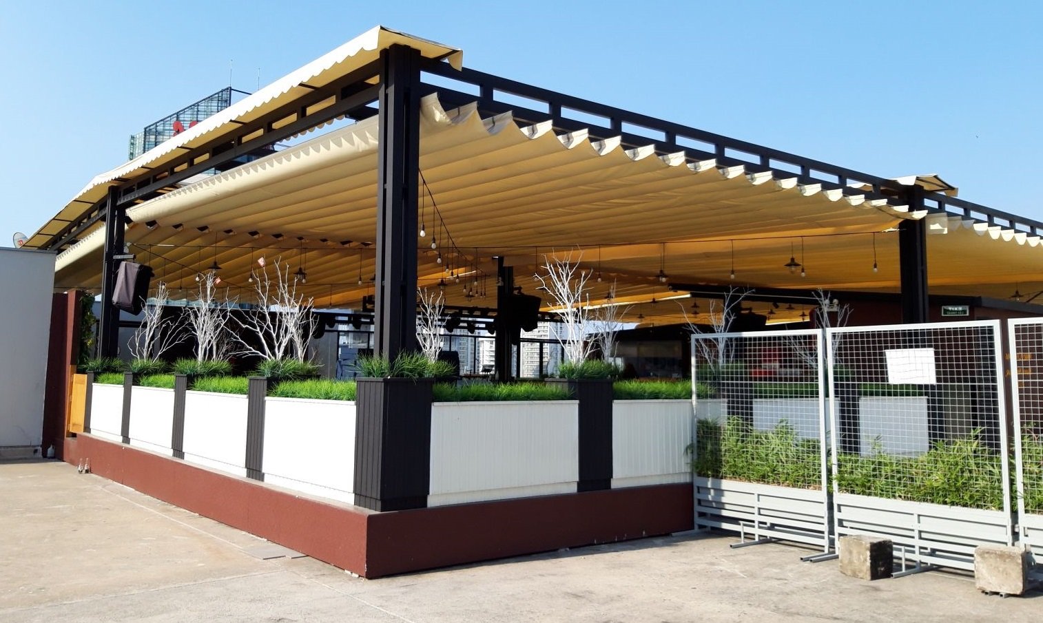 Hệ mái xếp có thể đóng – mở dễ dàng bằng tay hoặc motor. Khi không cần sử dụng, bạn thu gọn bạt lại để trả lại không gian thoáng đãng.