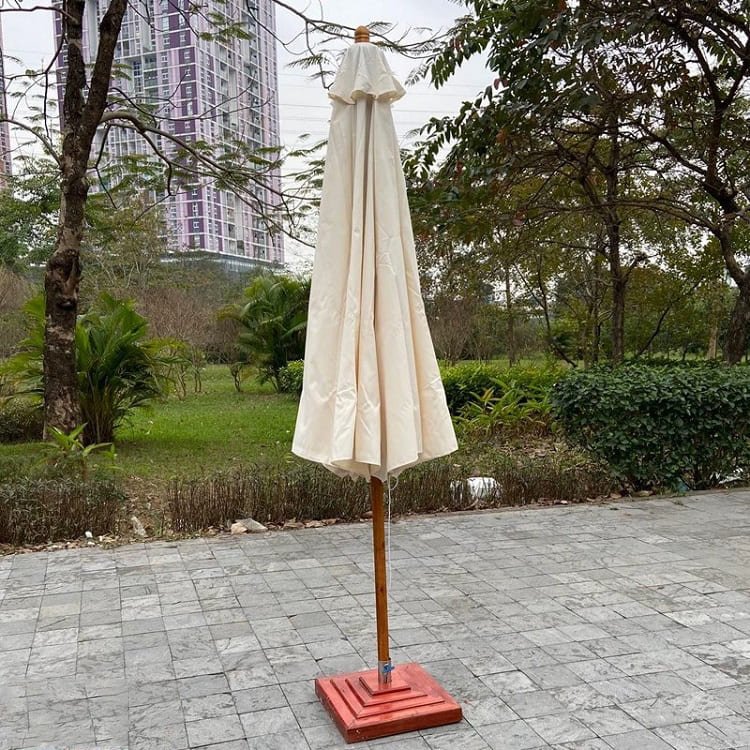 – Thân ô dù làm bằng gỗ, ô dù chính tâm gỗ có dây ròng rọc trên thân điều chỉnh độ mở của ô.