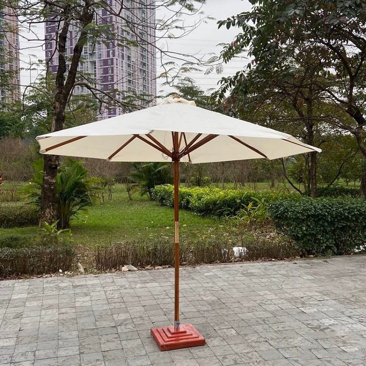 Ô dù hòa phát chính tâm cán gỗ 3m màu kem