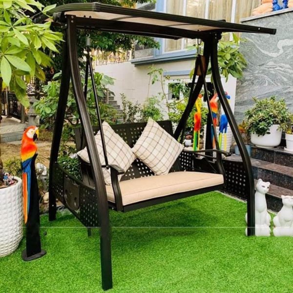 Mẫu xích đu sân vườn ngoài vẻ đẹp đến từ kiểu dáng, thiết kế, sản phẩm còn có thể phục vụ nhiều nhu cầu khác nhau trong thời gian bạn nghỉ ngơi, thư giãn, Phần ghế được thiết kế rộng rãi với 2 chỗ ngồi và 3 chỗ ngồi theo tiêu chẩn thoải mãi.